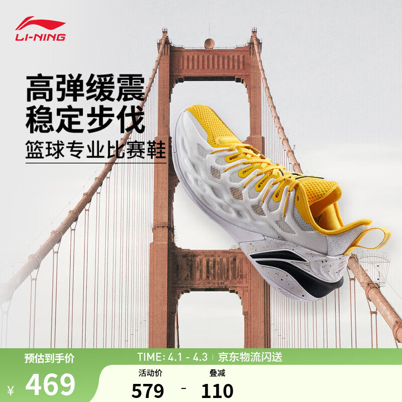 李宁巴特勒丨BUCKETS聚核芯助力系统篮球鞋男减震耐磨专业比赛运动鞋 标准白/活力黄-15 金门桥 42