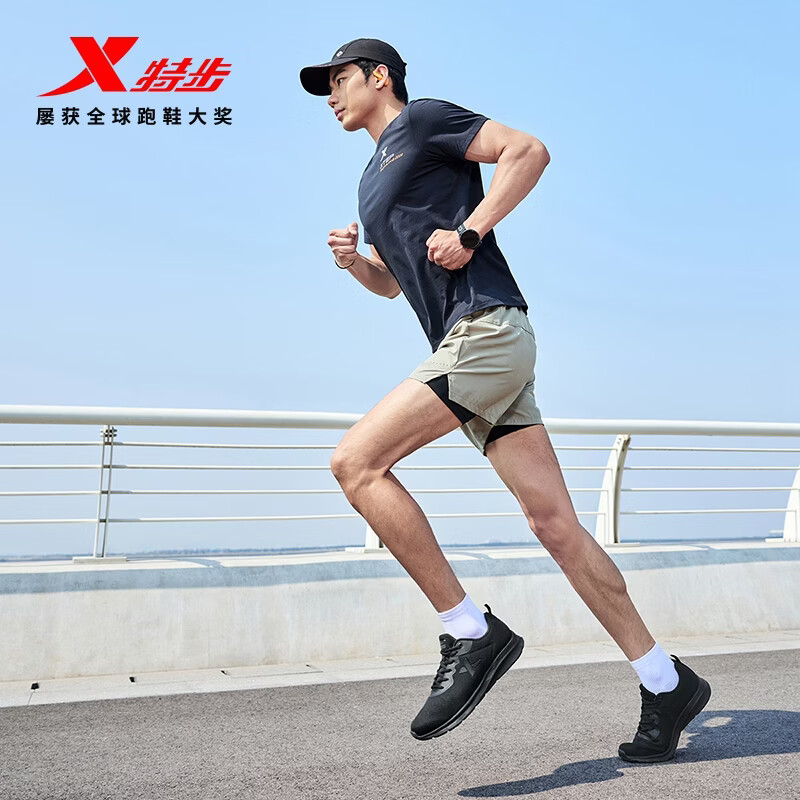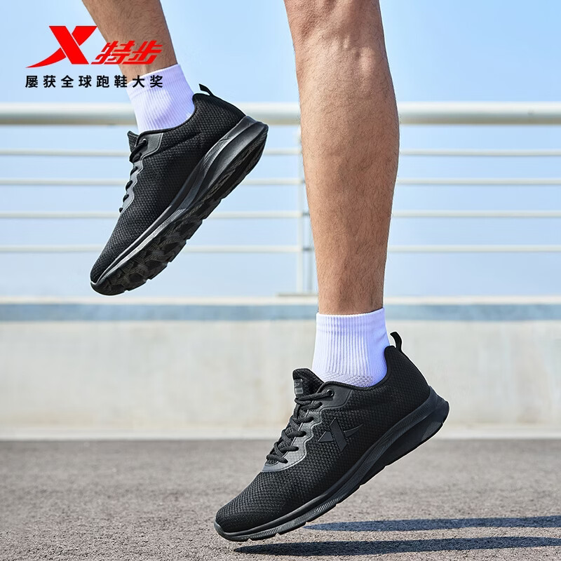 特步运动鞋男跑步鞋夏季网面透气轻便减震正品男子跑鞋休闲鞋子黑色