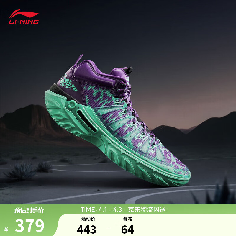 李宁桀骜2丨beng轻弹科技篮球鞋男高帮减震防滑轻便外场运动鞋 珠翠绿/龙庭紫-1 龙舌兰 39