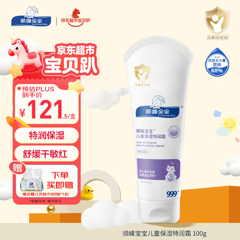 顺峰宝宝特润霜100g 宝宝婴儿保湿面霜舒缓干燥敏感皮肤青少年面霜特润型