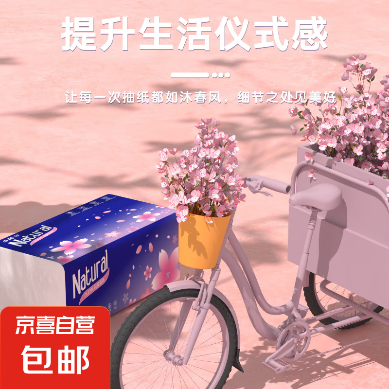 【真实惠】樱花原木抽纸餐巾纸面巾纸卫生纸家庭装实惠装 樱花原木抽纸 5层 240张*1包