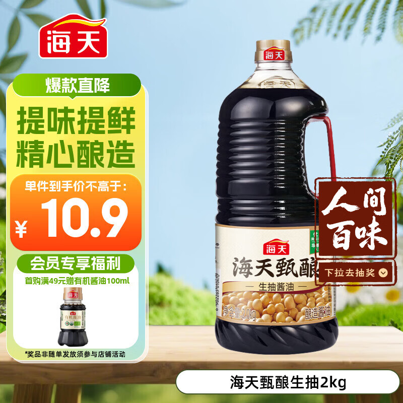 海天 甄酿生抽酱油2kg【酿造酱油】经典系列 点蘸提鲜凉拌