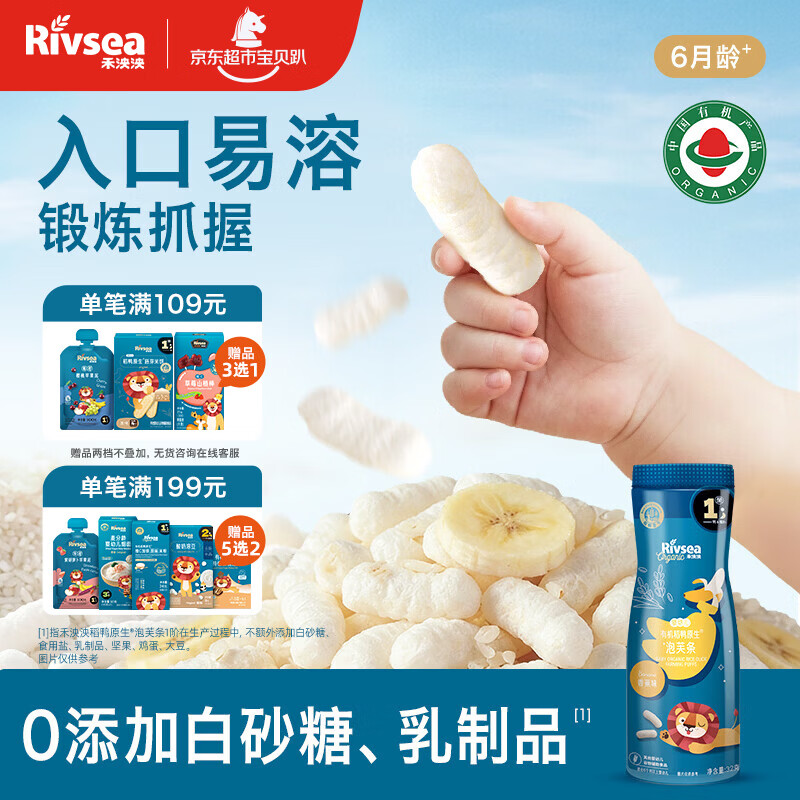 禾泱泱有机婴幼儿高钙泡芙条香蕉味 宝宝婴儿零食 稻鸭原生低敏32g 6月+