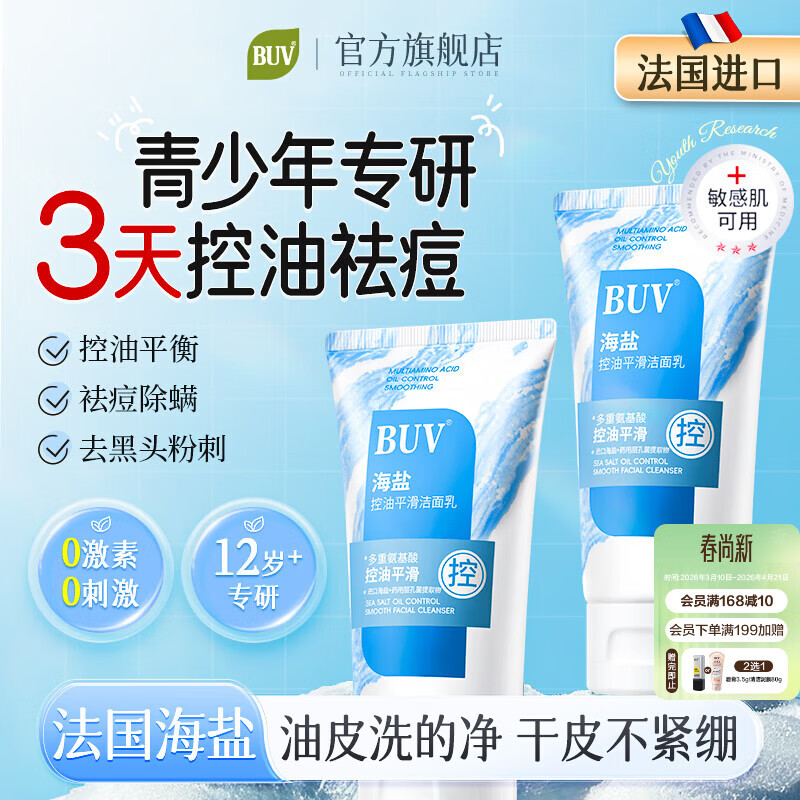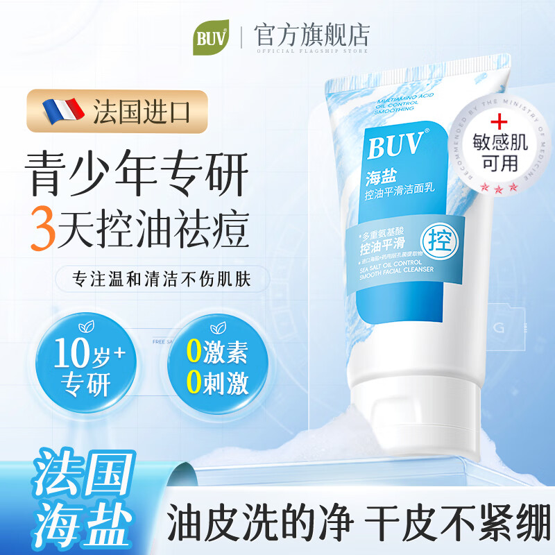 BUV青少年洗面奶祛痘控油学生专用氨基酸保湿去黑头痘印缩毛孔金榜1