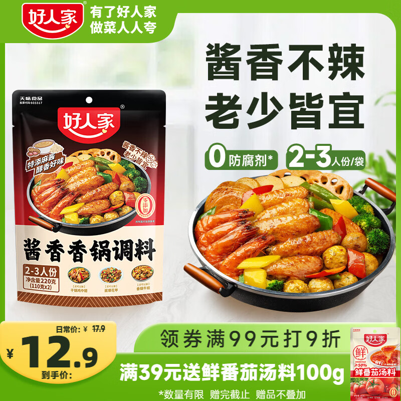 好人家酱香香锅调料220g【0添加防腐剂】家用麻辣香锅调料干锅酱