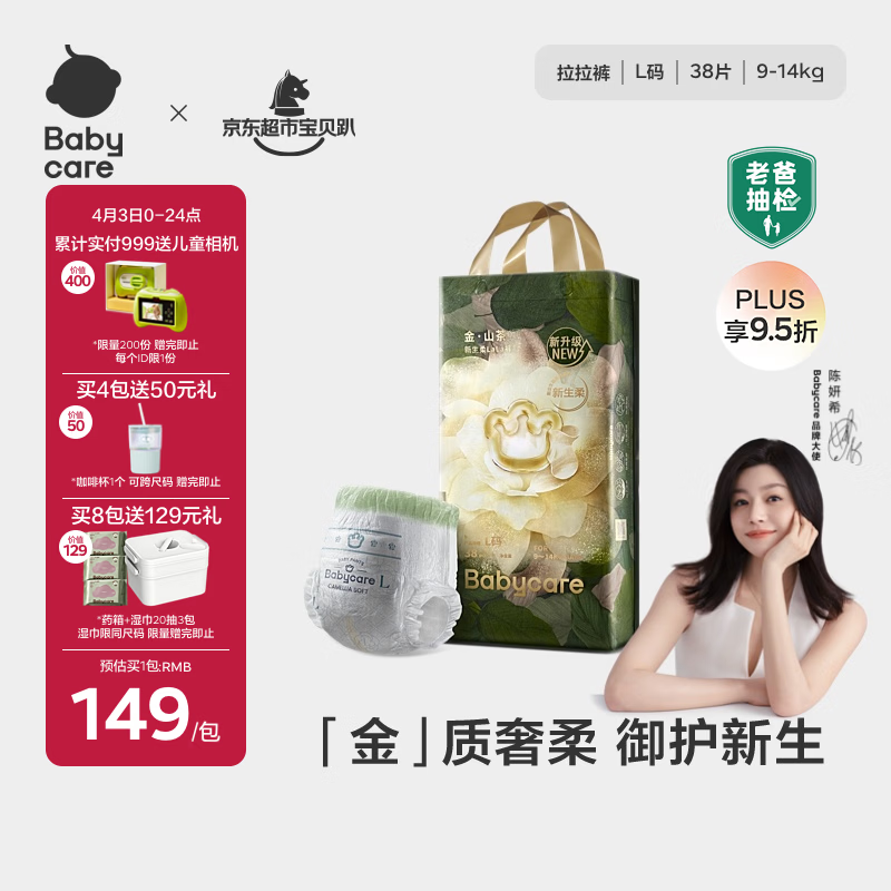 babycare金山茶花拉拉裤L38片(9-14kg)婴儿尿不湿超薄透气新生柔花苞裤