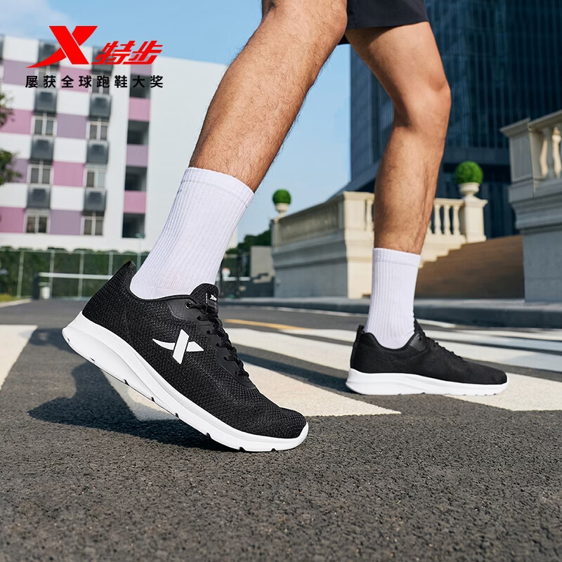 特步运动鞋男跑步鞋夏季网面透气轻便减震正品男士跑鞋休闲鞋子黑色
