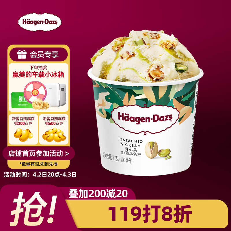 哈根达斯(Haagen-Dazs)开心果奶霜口味冰淇淋100ml/杯 雪糕