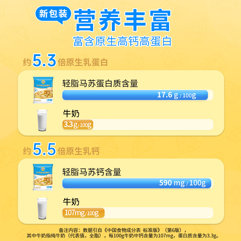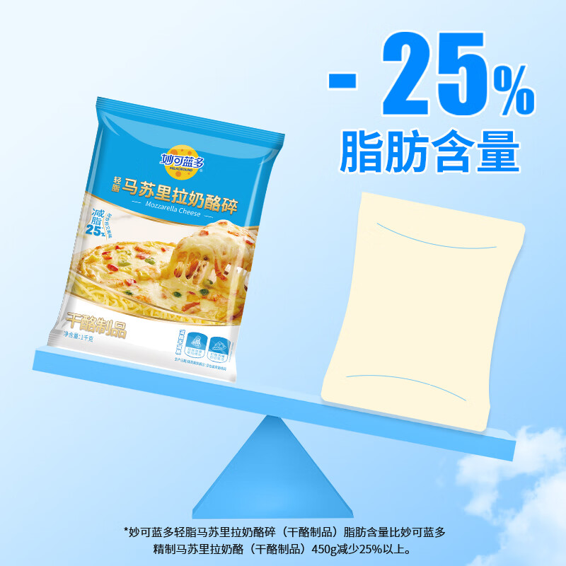 妙可蓝多轻脂马苏里拉芝士碎1kg冷冻锁鲜披萨焗饭家庭烘焙