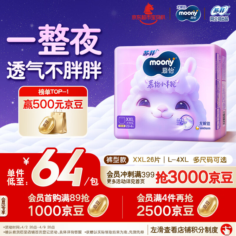 MOONY苏菲尤妮佳Q薄萌羽慕怡小羊驼拉拉裤XXL26片(15kg及以上)