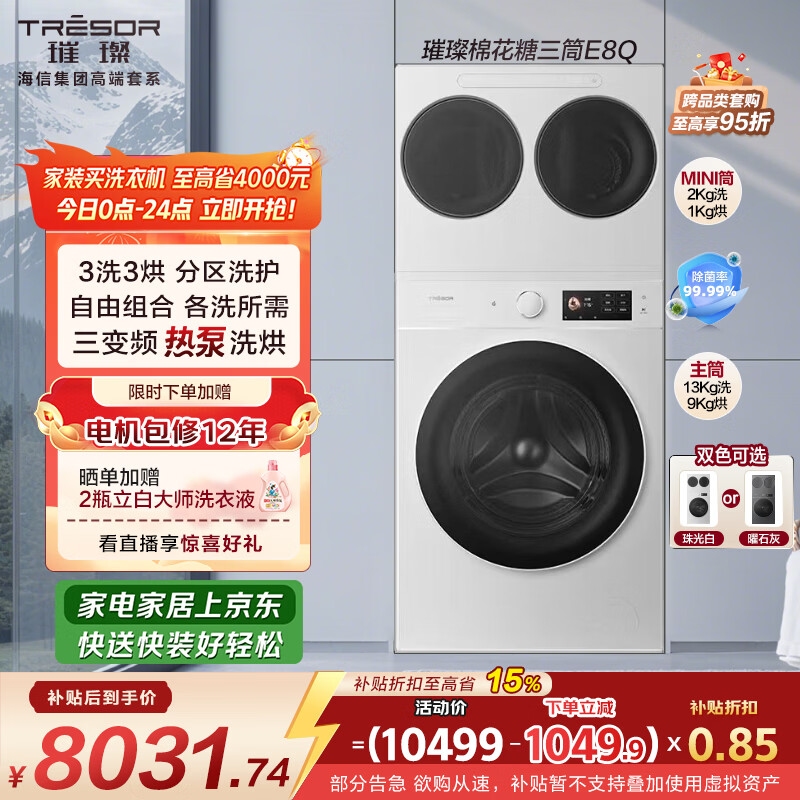 海信(Hisense)璀璨棉花糖热泵洗烘三筒洗衣机 分区洗全家筒活水健康自由组合 三桶WH130E8Q-1+WV20W以旧换新补贴