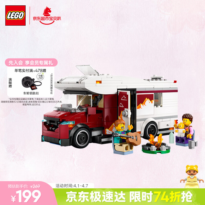 乐高(LEGO)积木城市系列60454 假日探险野营车男孩儿童玩具生日礼物摆件