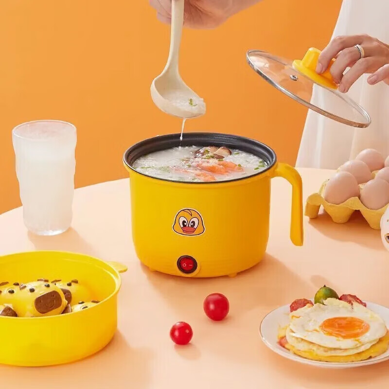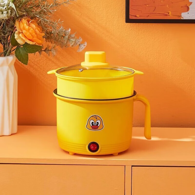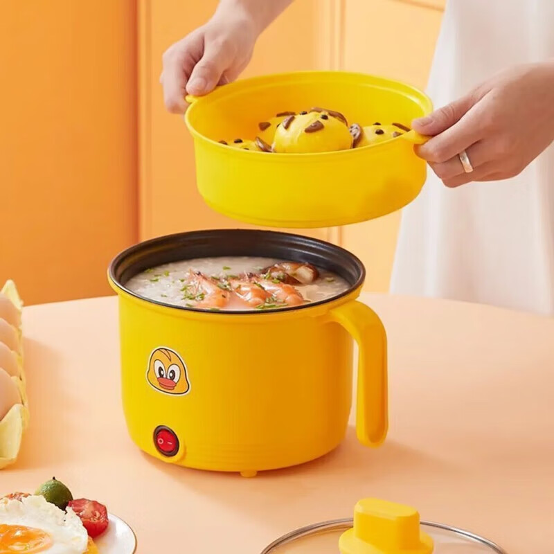 电煮锅电锅小电锅电炒锅电热锅多功能一锅多用宿舍电煮锅电炖锅火锅1-2人蒸煮一体 小黄鸭电煮锅不锈钢内胆