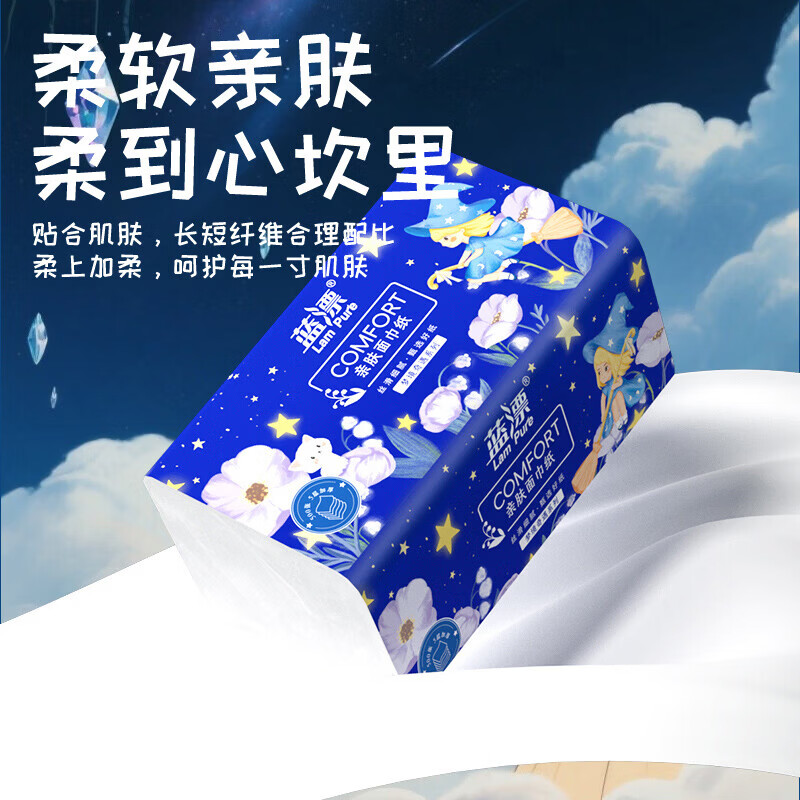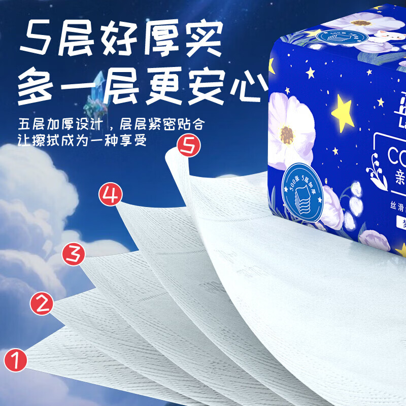 蓝漂纸巾抽纸面巾纸 4边压花 超大包100抽5层加厚 原生木浆 【175*175mm】 5层 500张*5包