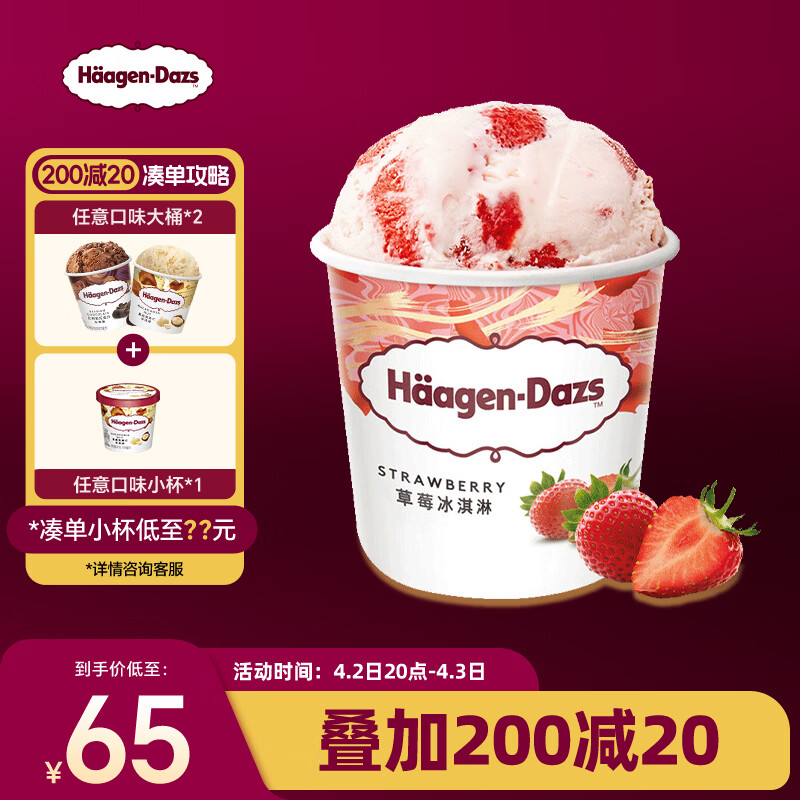 哈根达斯(Haagen-Dazs)经典草莓味大桶冰淇淋 473ml/桶 家庭装 雪糕