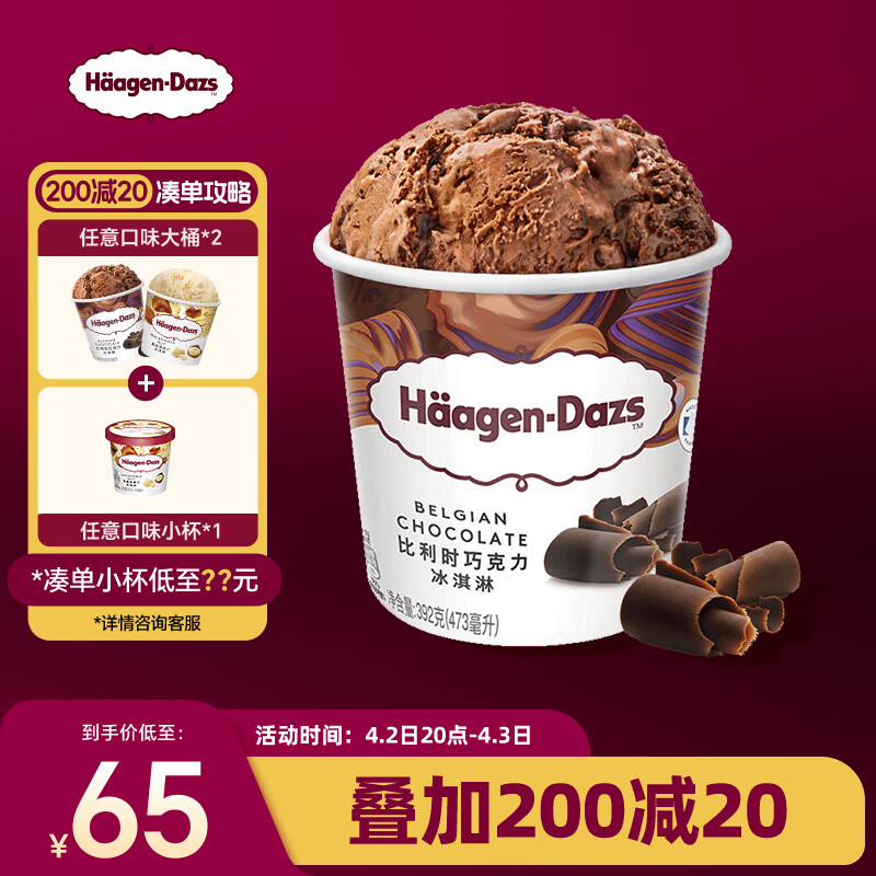 哈根达斯(Haagen-Dazs)比利时巧克力口味大桶冰淇淋473ml 家庭装 雪糕