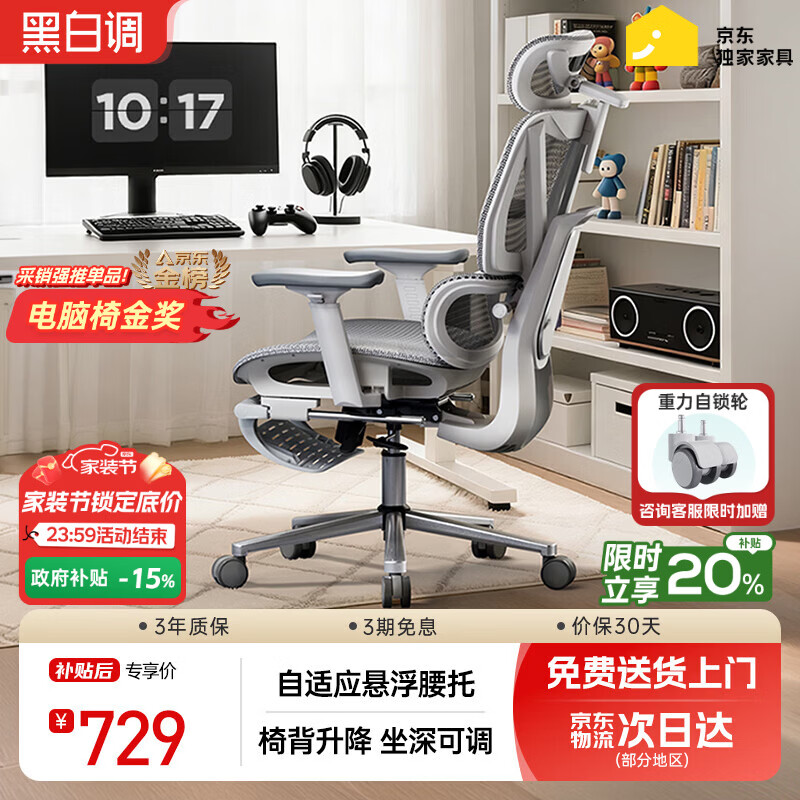 黑白调P3人体工学椅电脑椅办公人工力学座椅学习电竞椅子可躺