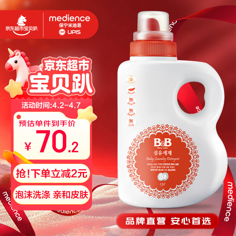 保宁(B&B)婴幼儿洗衣液宝宝专用可手洗新生儿内衣内裤洗衣液桶装【3斤装】