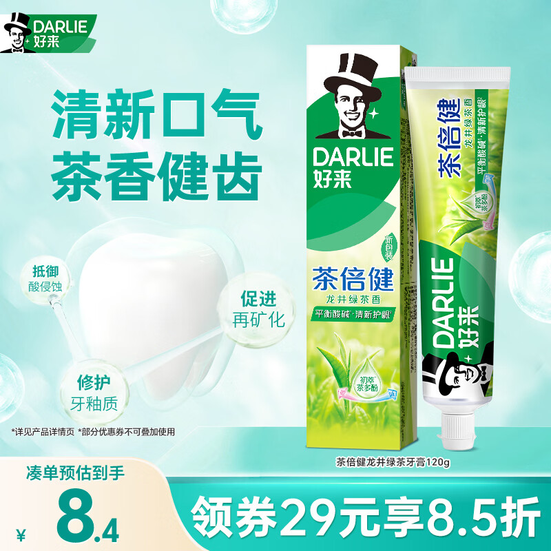好来(DARLIE)(原黑人)茶倍健龙井绿茶牙膏 清新口气护龈健齿120g 新旧随机