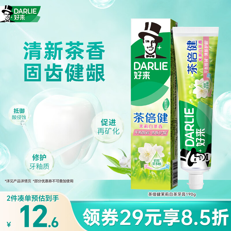 好来(DARLIE)(原黑人)茶倍健茉莉白茶牙膏清新口气健齿护龈190g新旧包装随机