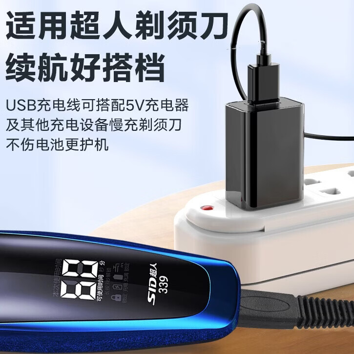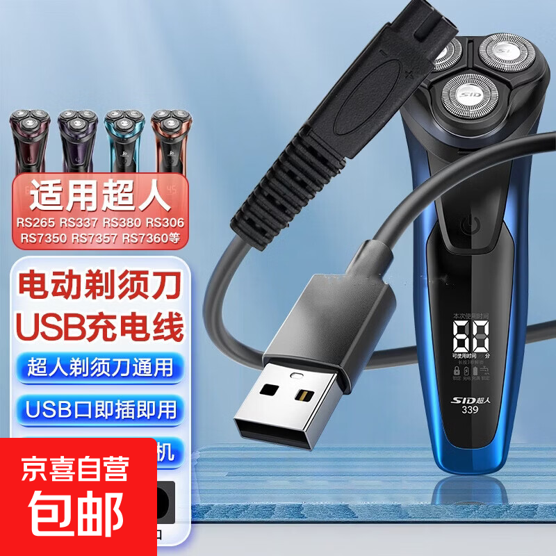 潮范适配SID超人剃须刀充电线原装充电器刮胡刀RS3750/335/337/338/339/385/SA647/972/7257充电线两孔 超人剃须刀充电线