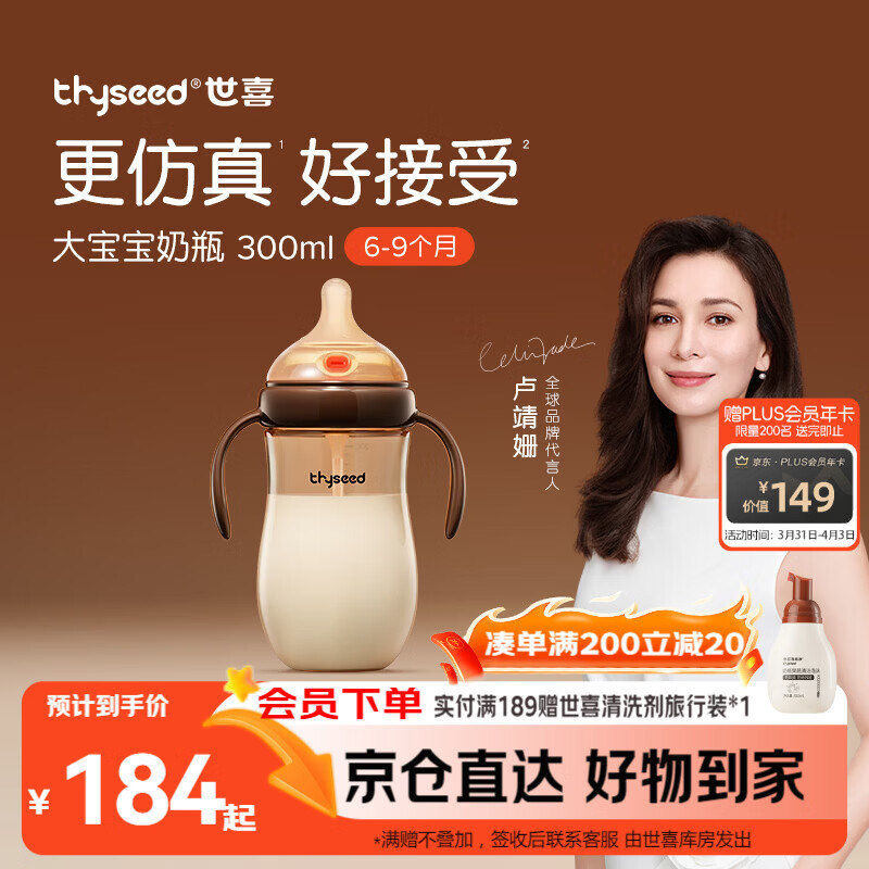 世喜奶瓶6-9个月以上大宝宝ppsu婴儿仿母乳奶嘴带重力球手柄300ml
