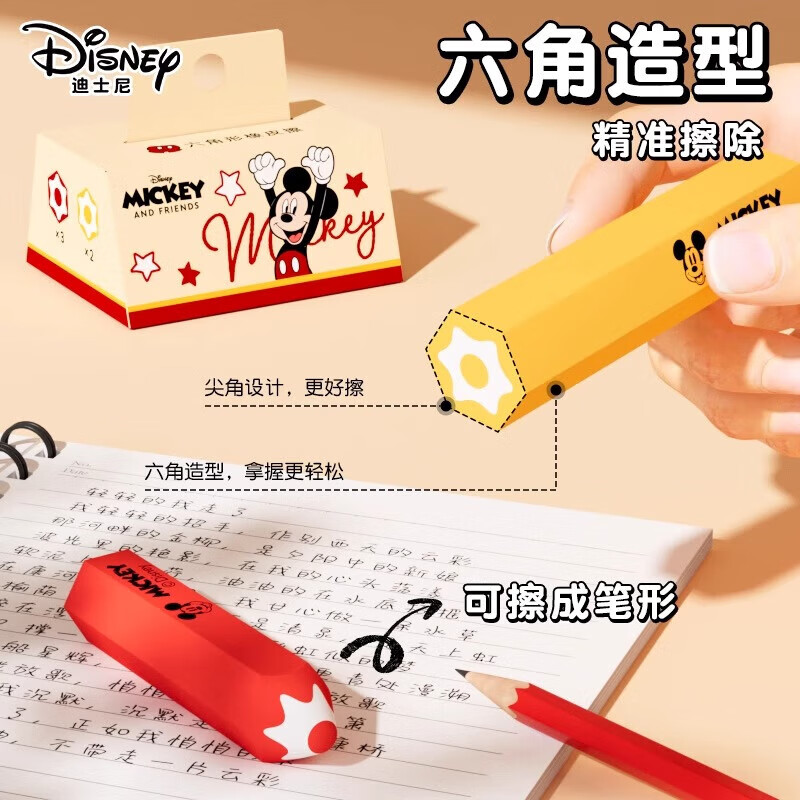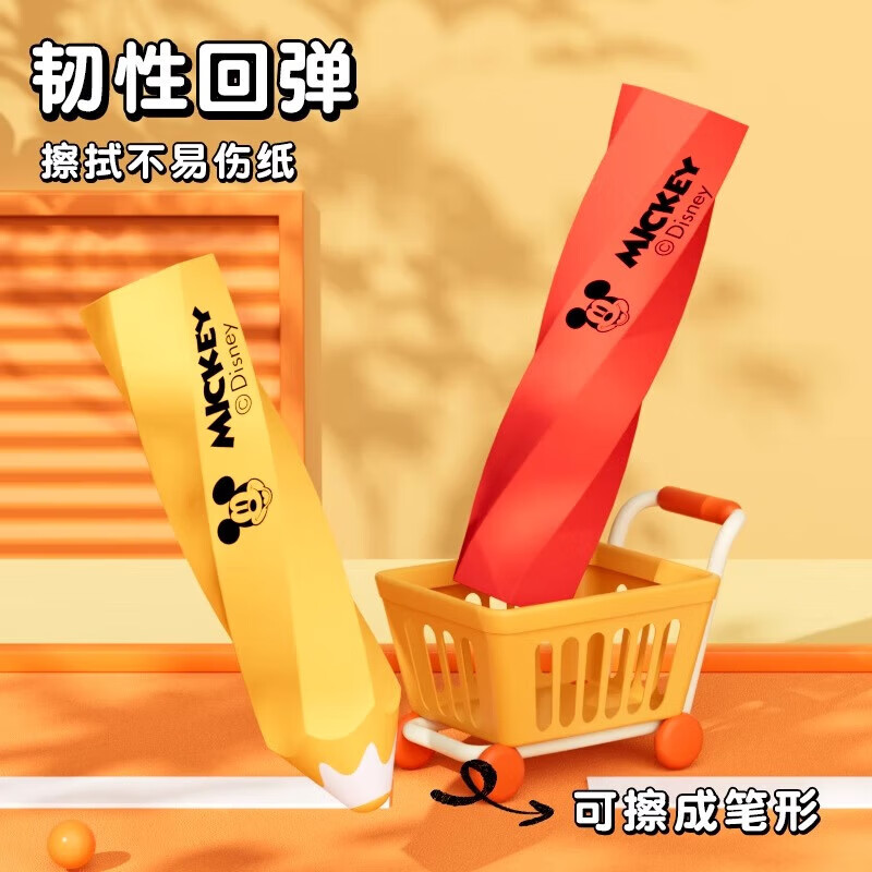 迪士尼真集屑铅笔橡皮擦无屑超干净不留痕小学生专用卡通可爱幼儿园儿童无毒2b考试可削笔形 5块/盒【米奇】