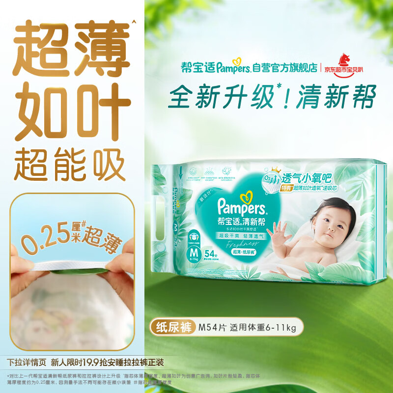 帮宝适超薄透气清新帮纸尿裤新生儿婴儿尿不湿尿片透氧Pro M54