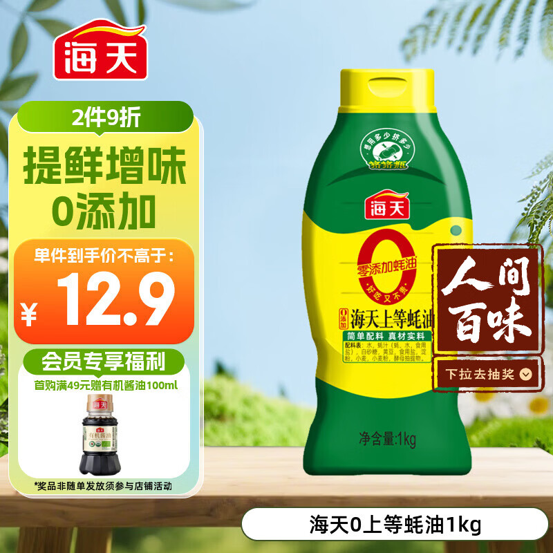 海天 0上等蚝油1kg 0添加 挤挤装 蘸拌炖捞炒提鲜