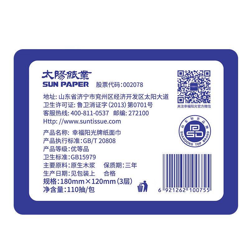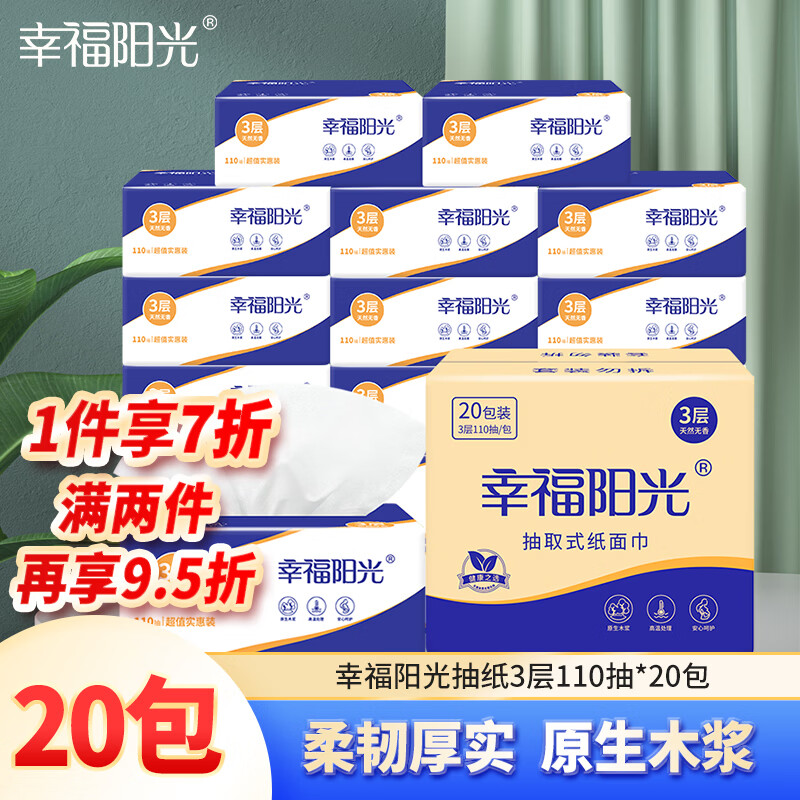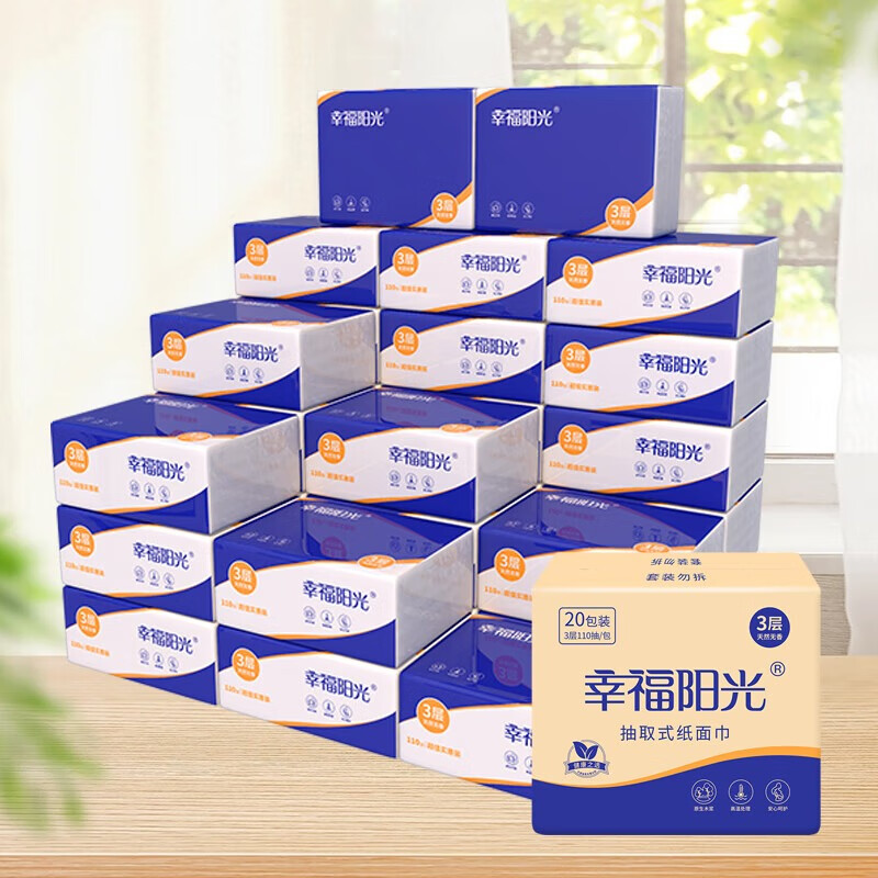 幸福阳光抽纸 经典系列 3层110抽*20包餐巾面巾擦手纸巾
