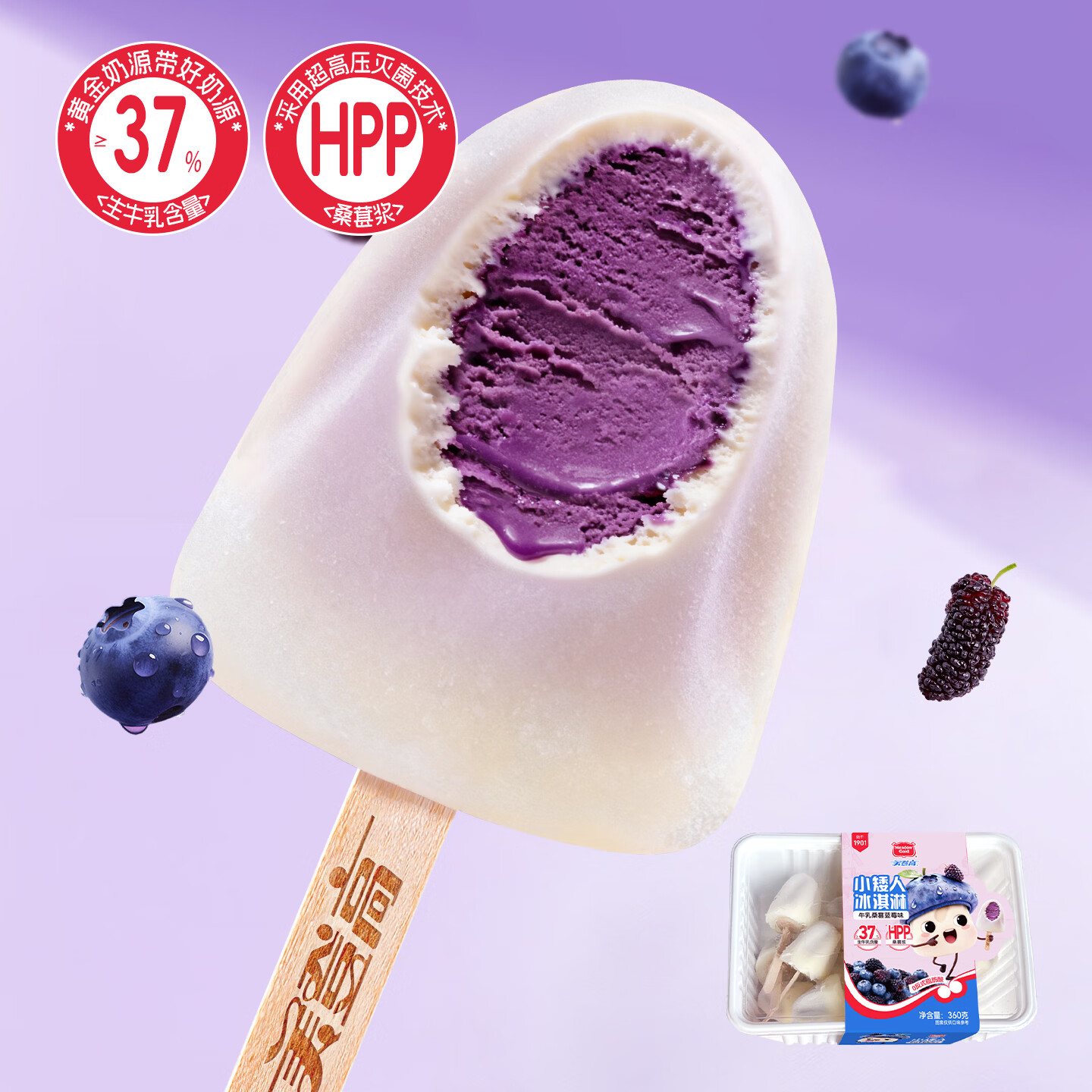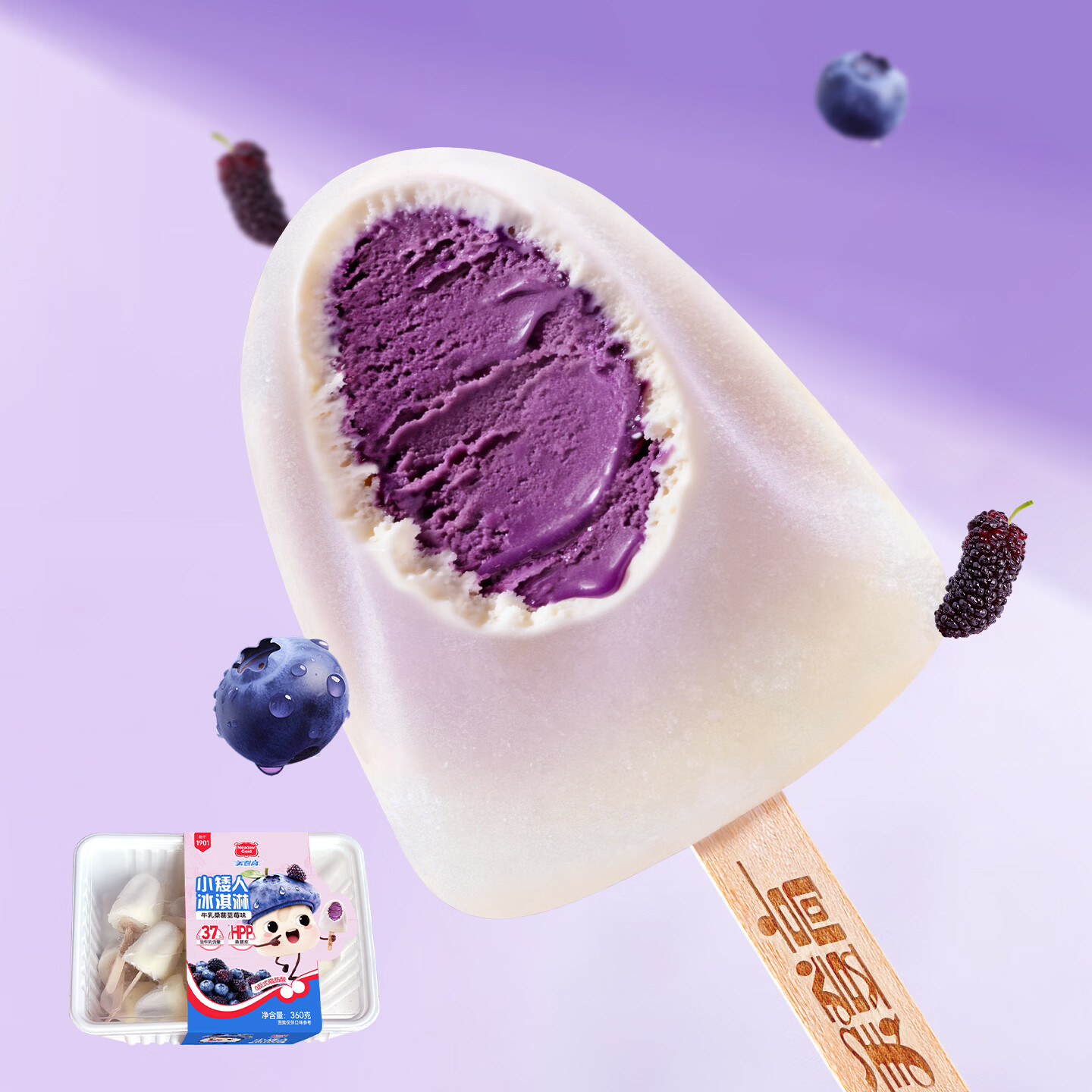 美登高小矮人冰淇淋 牛乳蓝莓桑葚味360g/盒 生牛乳≥30%雪糕冰激凌