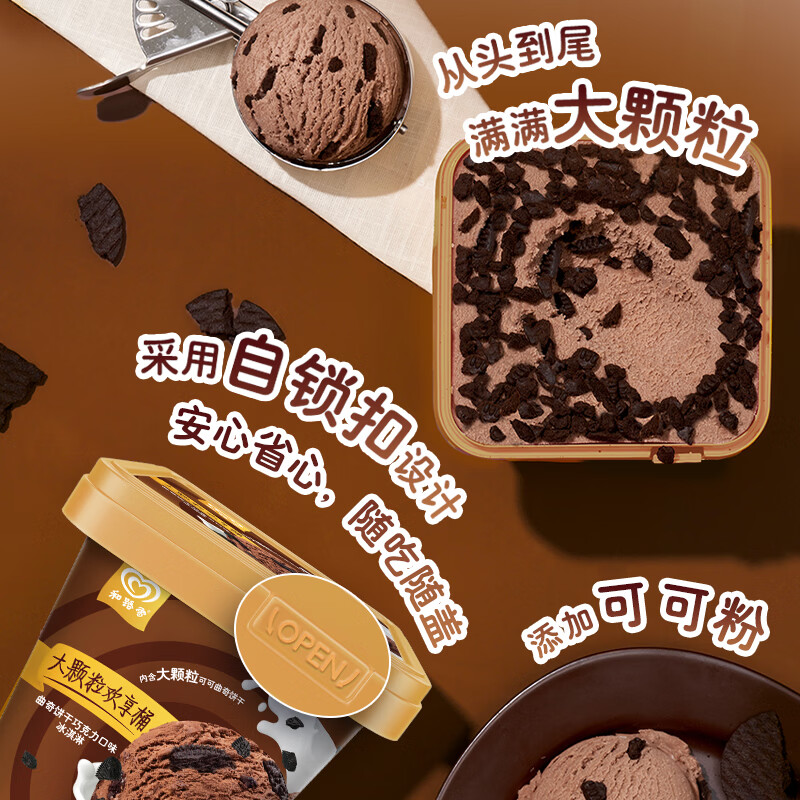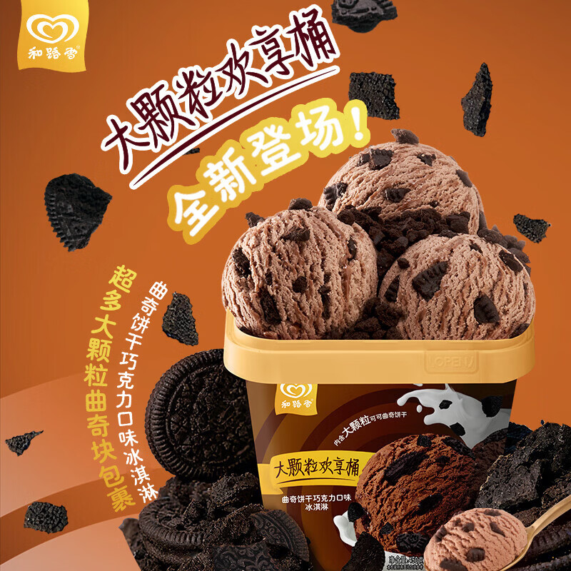 和路雪家庭装曲奇饼干巧克力口味大桶桶装冰淇淋550g