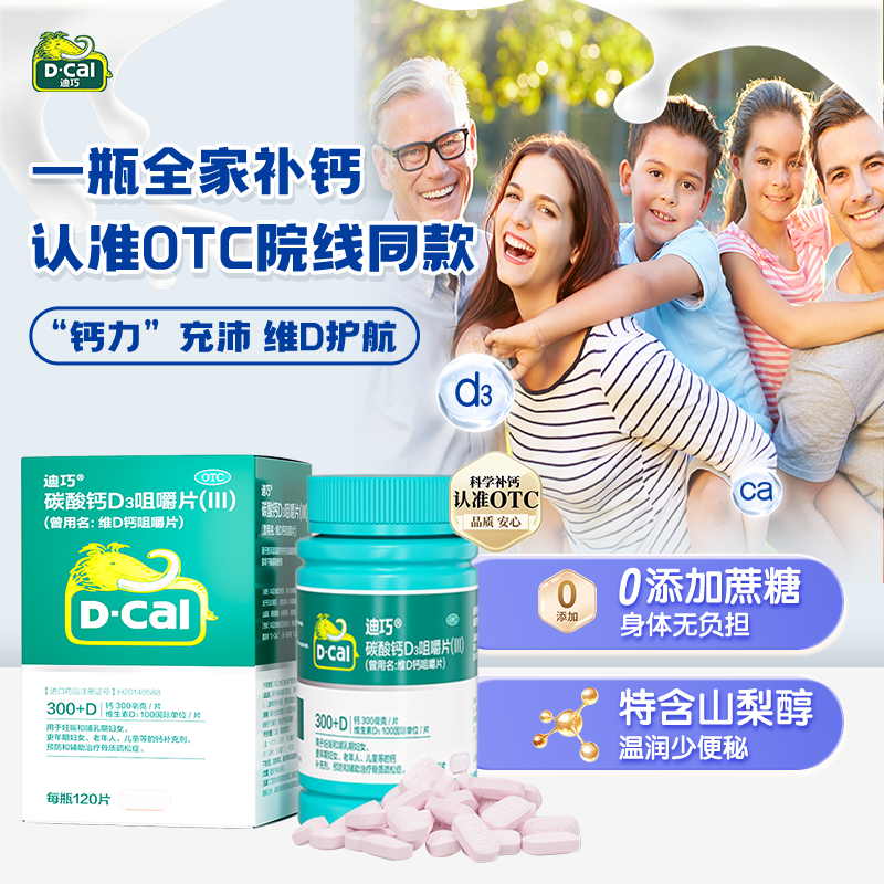 迪巧碳酸钙d3咀嚼片120粒OTC钙片维生素d3成人孕妇哺乳期钙片女士补钙预防骨质疏松手足抽筋美国进口非液体钙