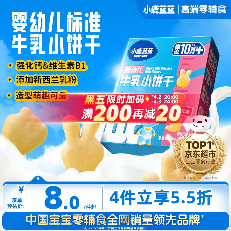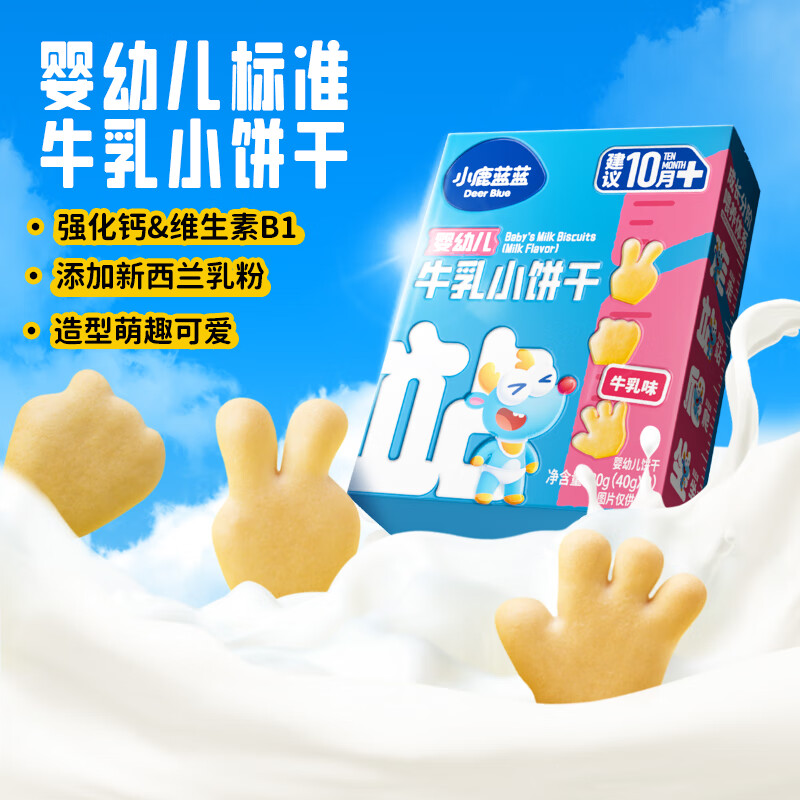 小鹿蓝蓝婴幼儿牛乳小饼干 宝宝婴儿零食饼干早餐 益智造型80g 10个月+