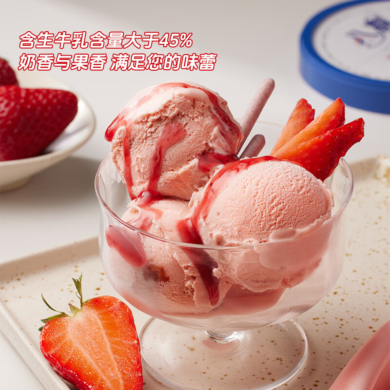 八喜冰淇淋 草莓口味550g*1桶 家庭装 生牛乳冰淇淋桶装