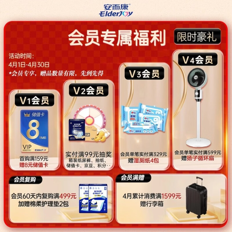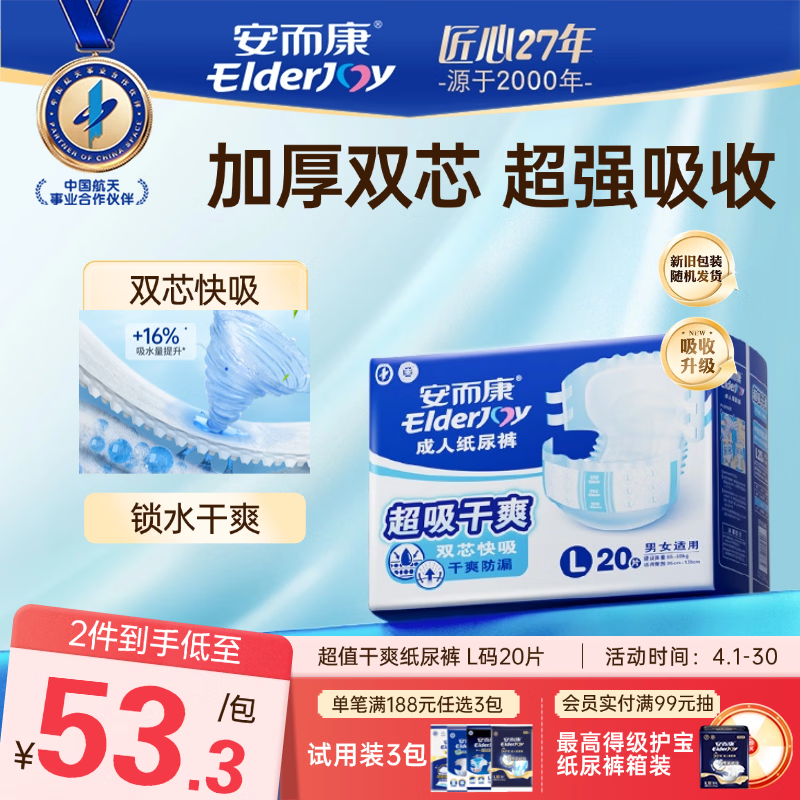 安而康(Elderjoy)超吸干爽成人纸尿裤L20片臀围95-120cm成人尿不湿老人快吸防漏