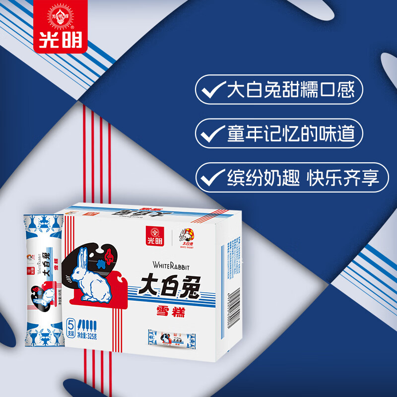 光明牌大白兔雪糕65g*5支 冰淇淋棒冰 家庭装冰激凌冷饮 25年生产清仓