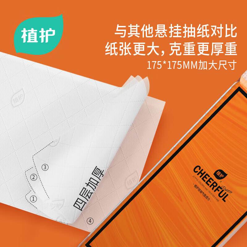 植护悦色橙面巾纸悬挂式4层320抽*6提餐巾纸厕纸擦手大尺寸整箱卫生纸