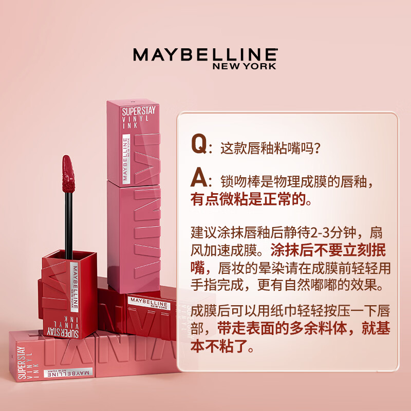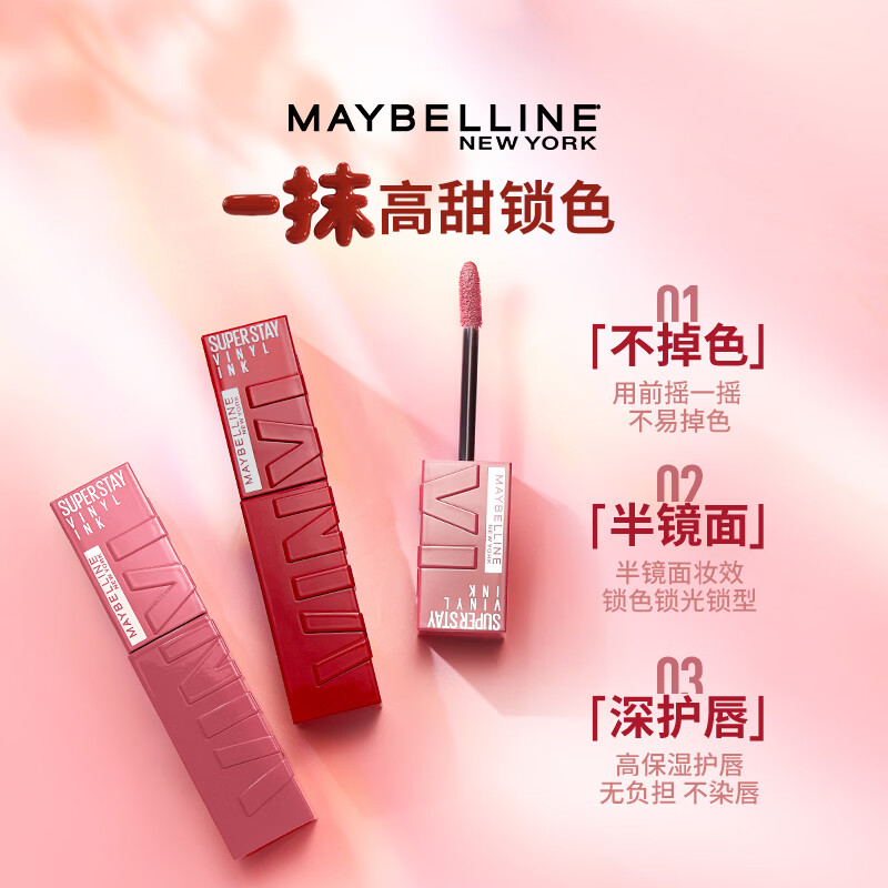 美宝莲锁吻棒巨持色镜面唇釉口红持久滋润68晨曦玫瑰4.2ml 生日礼物女