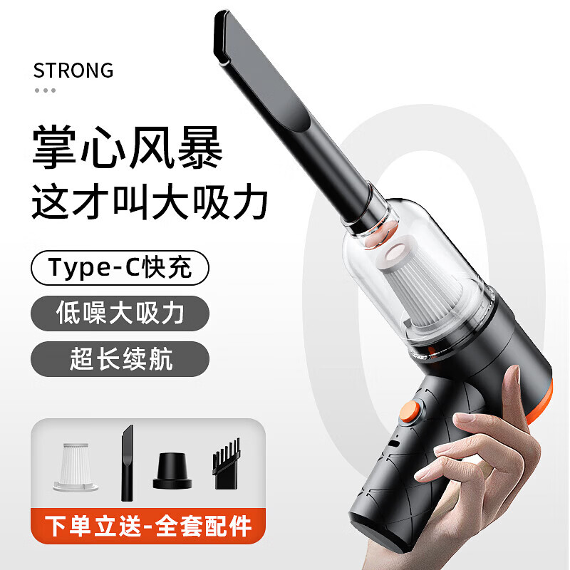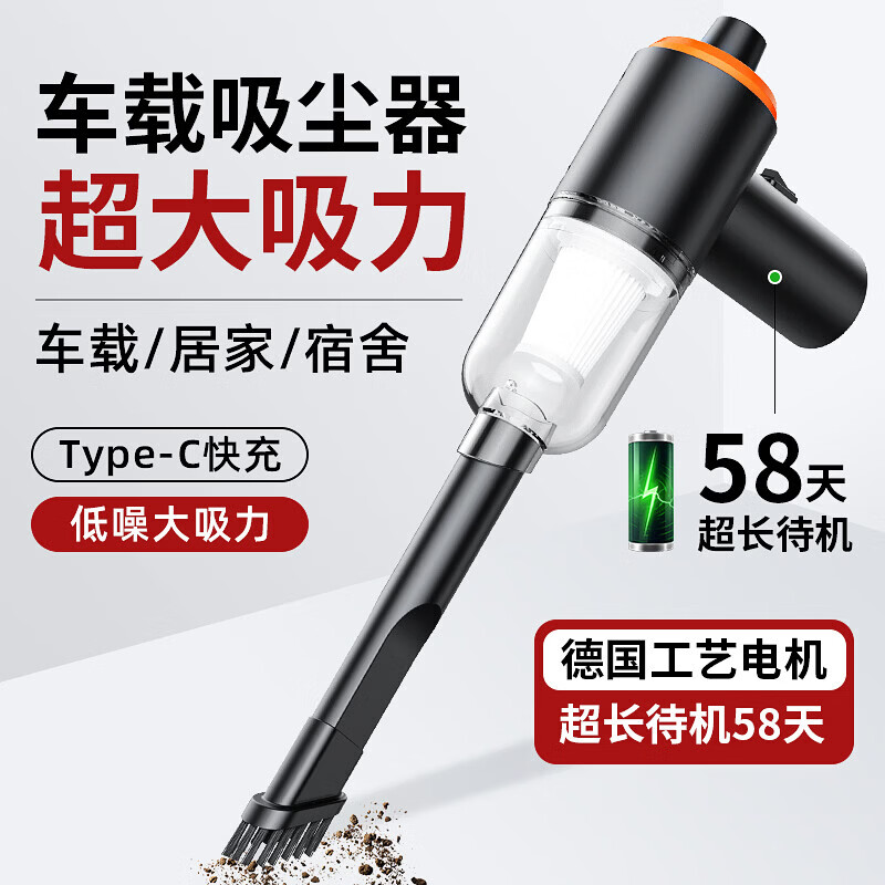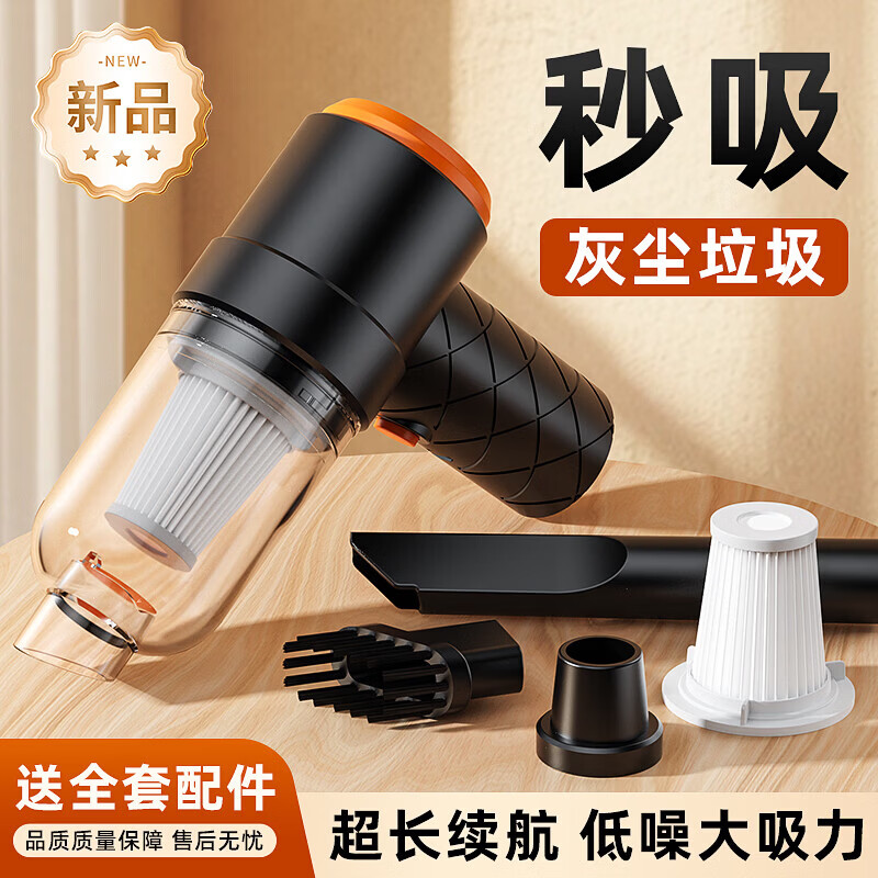 桌面吸尘器家用吸尘器车用无线充电两用家用小型迷你汽车大功率强力吸力桌面吸尘器 车用吸尘器充电款|吹吸一体|长嘴配件|黑色款