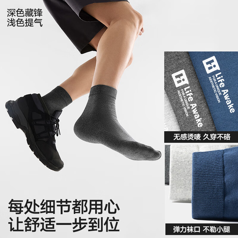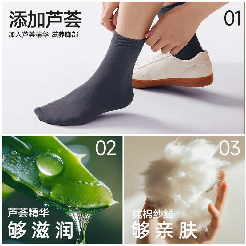 海澜之家【芦荟润肤】袜子男士中筒纯棉抗菌消臭抗起球运动休闲中长袜5双