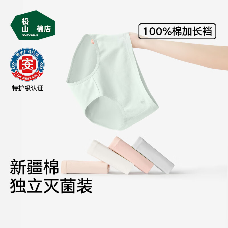 松山棉店【首次免洗即穿特护级】新疆棉内裤女士7A抑菌无痕亲肤透气三角裤 米白+浅绿+肤色【主销色】 3条 M 推荐:90-115斤