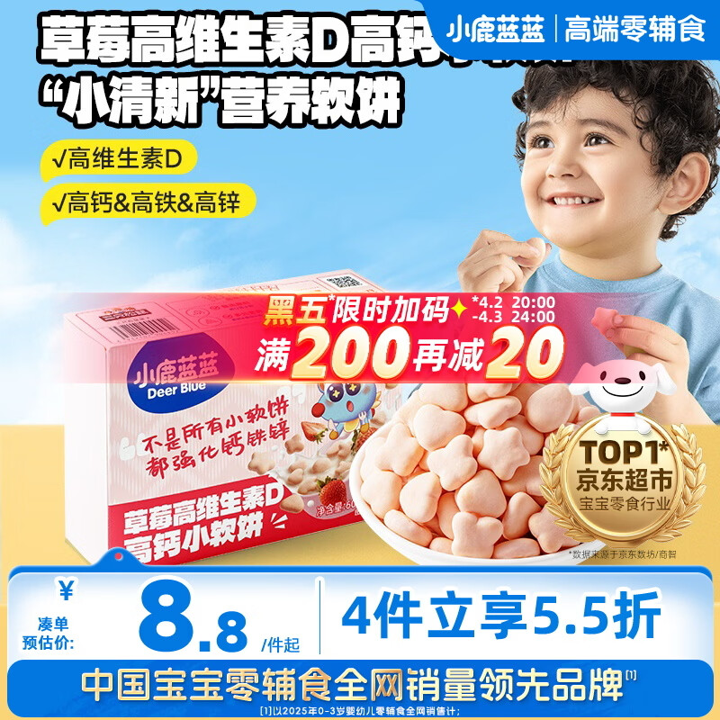 小鹿蓝蓝高钙小软饼草莓味宝宝零食高维生素D儿童饼干糕点点心60g