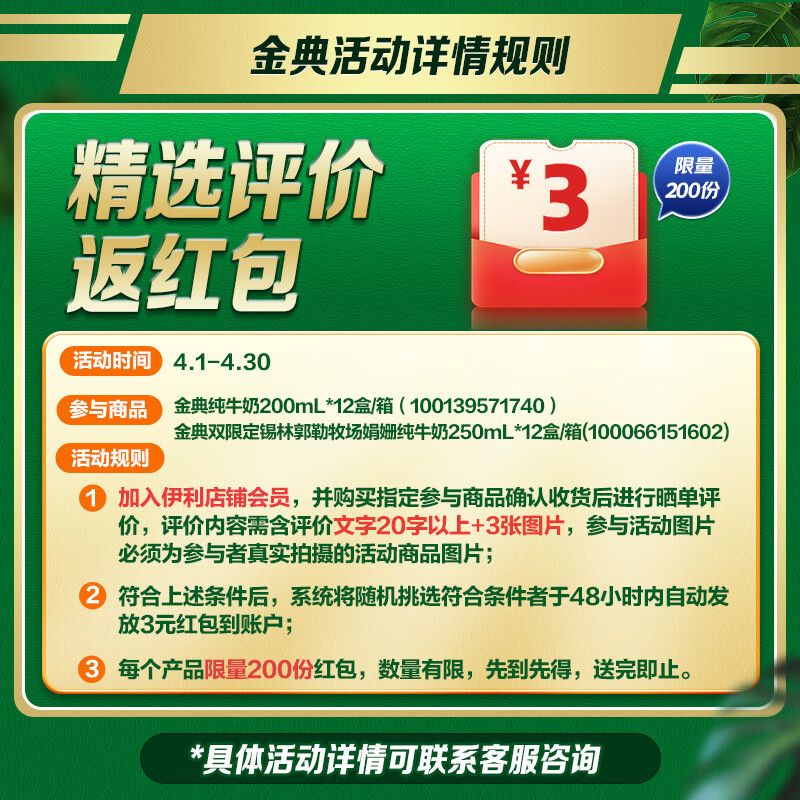 伊利金典有机纯牛奶200ml*10盒 3.6g乳蛋白 礼盒裝 2月