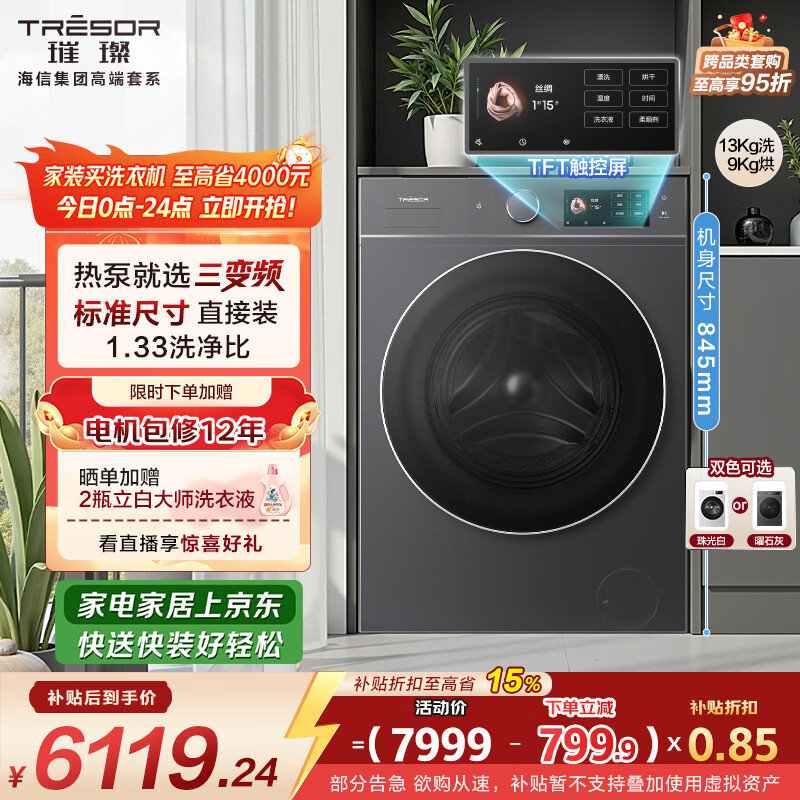 海信(Hisense)璀璨棉花糖滚筒洗衣机全自动热泵洗烘一体13KG大容量全家筒活水洗WH130E8Q以旧换新补贴 京东自营