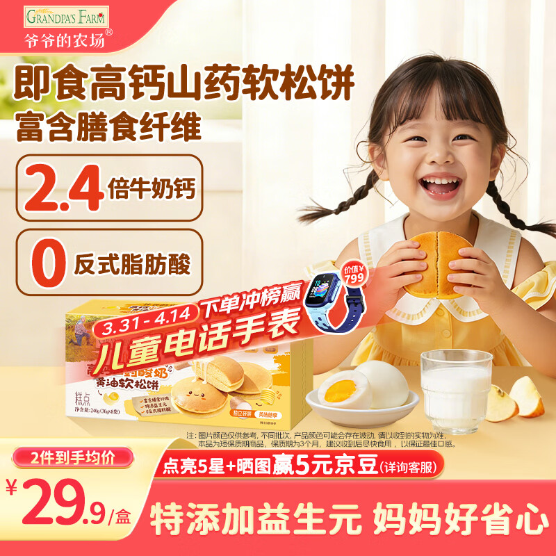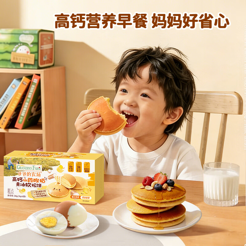 爷爷的农场儿童宝宝早餐松饼面包240g 宝宝零食高钙山药酸奶儿童面包