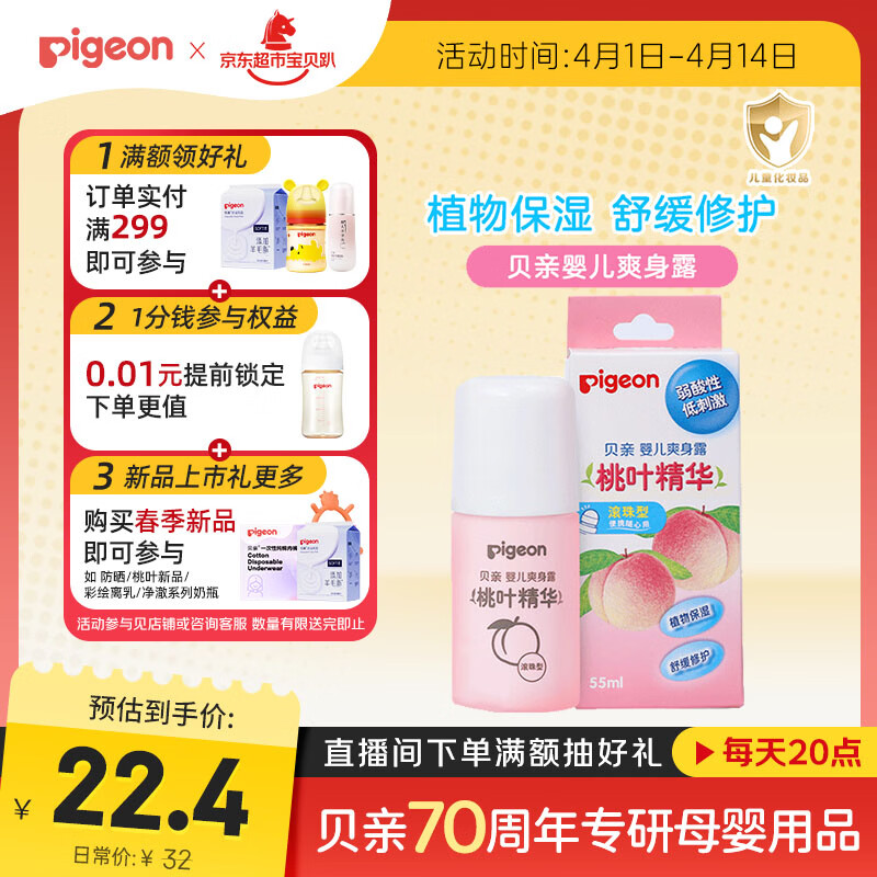 贝亲(Pigeon)桃子水液体婴儿爽身露滚珠型青少年腋下留香清新干爽净味便携55ml