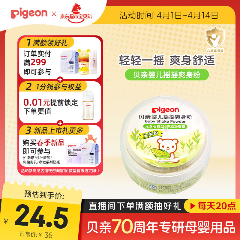 贝亲(Pigeon)婴儿爽身粉 玉米粉爽身粉 无滑石粉 无香精 50g HA15