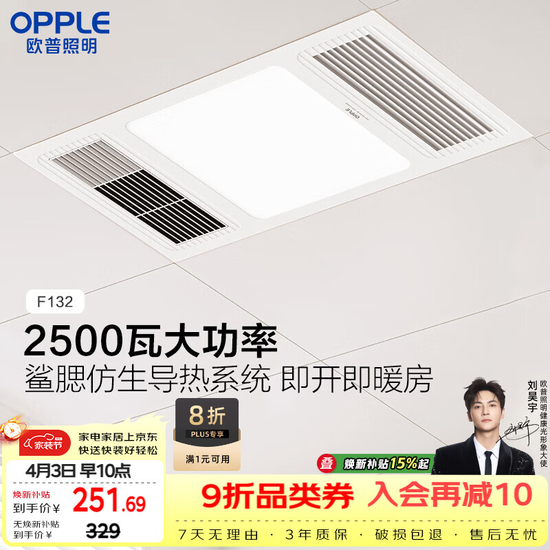 欧普照明(OPPLE)风暖浴霸基础暖系列即开即暖浴霸超薄多合一 F132-A