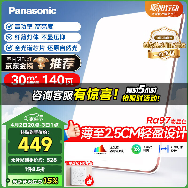 松下(Panasonic)吸顶灯全光谱护眼140W三档调色客厅大灯【补贴】【包安装】